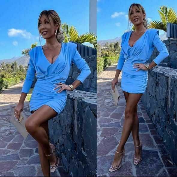 Sukienka mini z dekoltem w kolorze niebieskim , idealny na wieczorne wyjścia i specjalne okazje. Elegancki i kobiecy dodatek do garderoby.wysyłka za pobraniem inpost